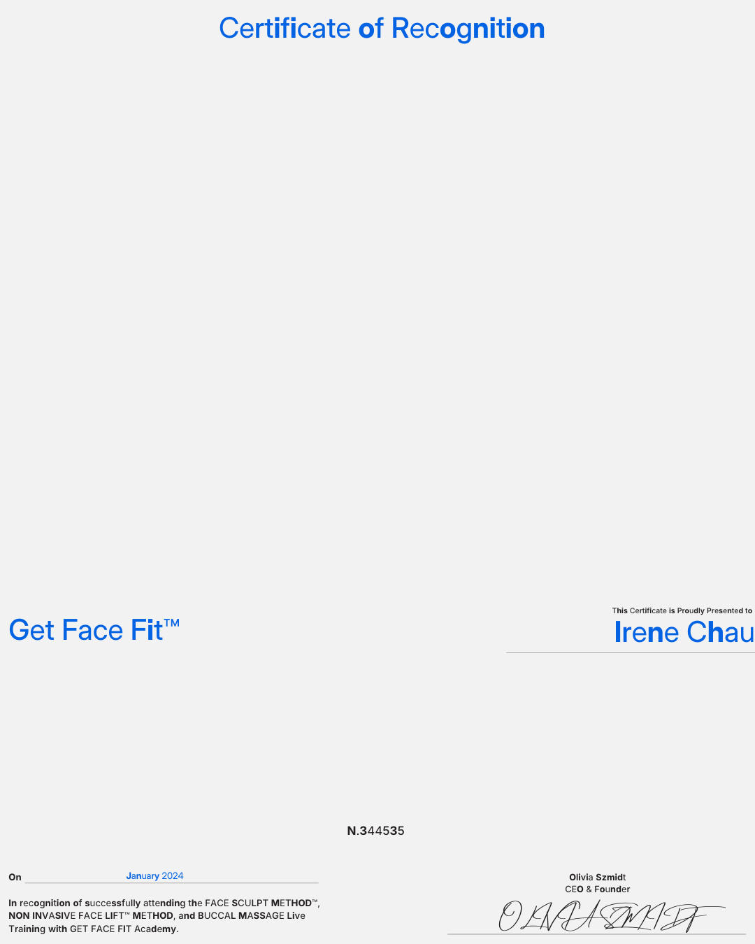 Over 2,000 hours spent mastering the Non Invasive Face Lifting Methods.