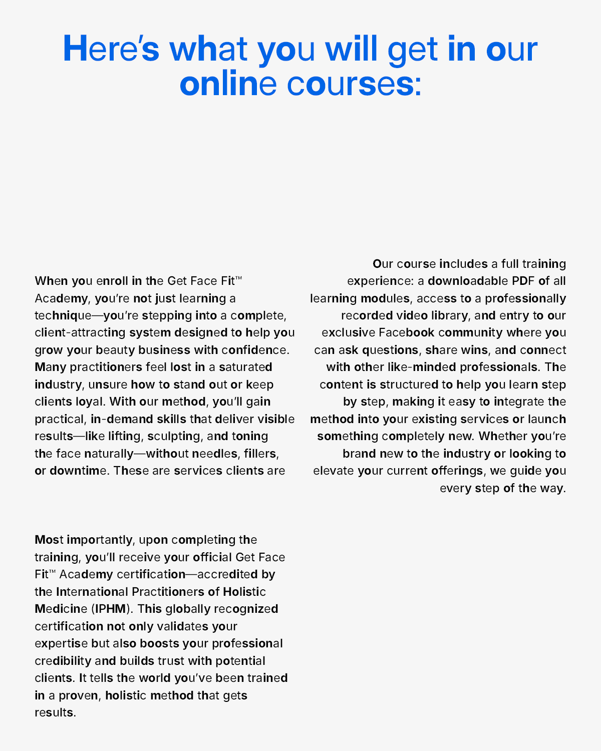 With a range of courses designed to fit your schedule, you can learn from the comfort of your own home. Learn with our interactive modules and live sessions that ensure personalized guidance and up-to date knowledge on non-invasive beauty practices. Enroll today and start your journey towards mastering holistic skincare with our expert-led online courses.